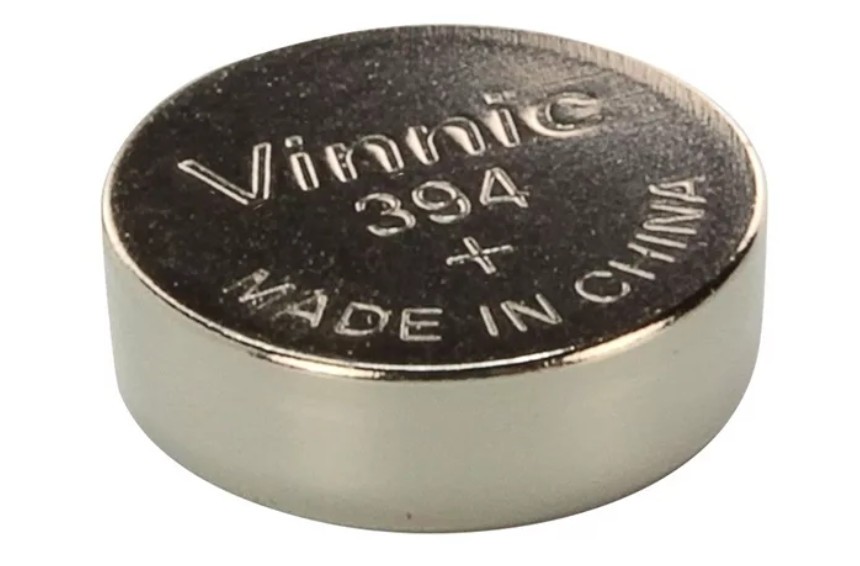 De 394-batterij wordt doorgaans in horloges gebruikt en is afkomstig van Renata. Dit Zwitserse bedrijf heeft een vrij goede reputatie. De batterij is een platte schijf met inlays aan de positieve kant. Op de inlays staat tekst. polariteit, land van herkomst, bedrijf en de aanwezigheid van schadelijke onzuiverheden.